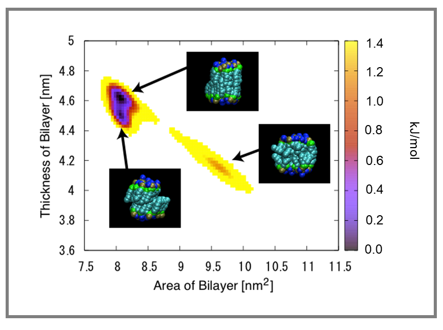 レプリカ交換分子動力学/Replica-Exchange MD (REMD)、脂質二重膜/Lipid Bilayer、ゾル-ゲル相転移/Sol-Gel Transition、相分離/Phase Separation、フローリー・ハギンスモデル/Flory-Huggins Model、膜タンパク質/Membrane Proteins